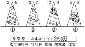 (3)乙图是“四个山地垂直自然带分布图”,其中位于南半球的是___________,可能位于丙图中D地区的是___________。