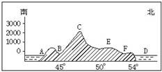 下图为“沿11°E经线的地形剖面图”,图中B、F为河流,且B河注入地中海,C为阿尔卑斯山。据此回答7~9题。