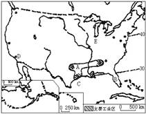 (2)B、C、D等工业城市的发展比E地区的城市快,这反映了美国工业分布的变化趋势是_________________________。