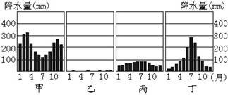 (1)下列四幅降水柱状图中,能正确反映③地和⑤地降水状况的分别是___________图和___________图。