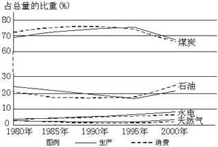 (2003年全国)2000年我国能源生产总量和消费总量分别为106988万吨标准煤、130297万吨标准煤。读图回答10-12题。