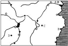 (1)图中开放城市名称:A是______________________,B是______________________;著名的矿产地名称:C是______________________,D是______________________。
