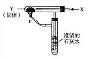 按右图装置持续通入气体X,并在管口P处点燃,实验结果使澄清石灰水变浑浊,则X、Y可能是( )