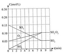22、(10分)在20L恒容的密闭容器中,加入3molSO3(g)和1mol氧气,在某温度下使其反应,反应至4min时,氧气的浓度为0.06mol/L,当反应到8min时,反应到达平衡。