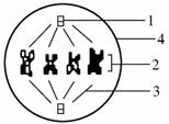 D. 图中1不具有膜结构,在前期完成复制