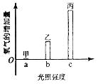 6.(09海南)取某种植物生长状态一致的新鲜叶片,用打孔器打出若干圆片,圆片平均分成甲、乙、丙三组,每组各置于一个密闭装置内,并分别给予a、b、c三种不同强度的光照,其他条件一致.照光相同时间后,测得各装置内氧气的增加量如右图所示下列叙述错误的是