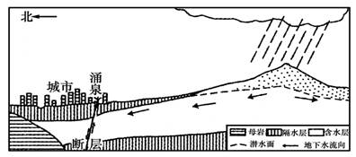 A.图中城市排放的废水下渗所致 B.游客向涌泉乱丢垃圾所致