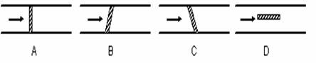 13.若该河流分布在南半球,则能正确表示沙坡脊部走向与河岸位置关系的是(箭头代表河流流向,阴影代表沙波脊部)C ( )