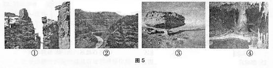 16.图5景观图片中,能代表甲地区典型地貌景观的是: