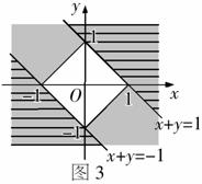 所表示区域,前者是图3中正方形外的部分,而后者是直线