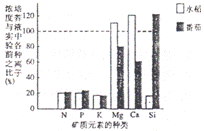 用完全培养液在两个相同的容器内分别培养水稻和番茄苗,假设两植物的吸水速率相同,一段时间后,测定培养液中各种离子与实验开始时各种离子浓度之比如右图所示。该实验的结果不能说明