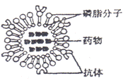 运用“人工膜技术”制作的携有单克隆抗体的磷脂微球体药物(如右图所示)。当药物被注射到实验鼠血液中一段时同后,首先在某种癌细胞内检测到药物已经进入。据此认为,药物进入细胞的方式最可能是