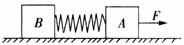 在水平面上放着两个质量分别为3 kg和2 kg的小铁块A和B,它们之间用一根自由长度为10 cm,劲度系数为10