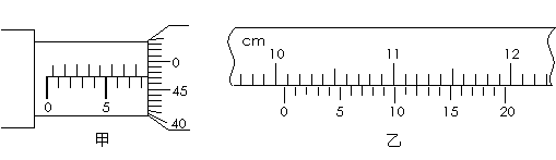 (6分)用螺旋测微器(千分尺)测小球直径时,示数如图甲所示,这时读出的数值是___________mm;用游标卡尺(卡尺的游标有20等分)测量一支铅笔的长度,测量结果如图乙所示,由此可知铅笔的长度是________cm。