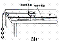 (15分)某实验小组利用拉力传感器和速度传感器探究“动能定理”,如图所示,他们将拉力传感器固定在小车上,用不可伸长的细线将其通过一个定滑轮与钩码相连,用拉力传感器记录小车受到拉力的大小。在水平桌面上相距50.0cm的A、B两点各安装一个速度传感器记录小车通过A、B时的速度大小。小车中可以放置砝码。