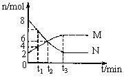 [解析]解题关键是抓住起点和t1、t2、t3等特殊点,在0到t2时间内(或选取0到t3之间的任一点)n(N)从8mol到4mol减少了4mol,n(M)从2mol到4mol增大了2mol,因此N为反应物,方程式为2N