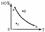 2NO2(g) △H<0中NO的百分含量NO%与T变化关系曲线图,图中有a、b、c、d四个点,其中表示未达到平衡状态,且v正<v逆的点是