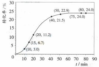 甲酸甲酯转化率在温度T1下随反应时间(t)的变化如下图: