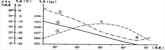 A.气温、正午太阳高度、气压 B.气压、气温、正午太阳高度
