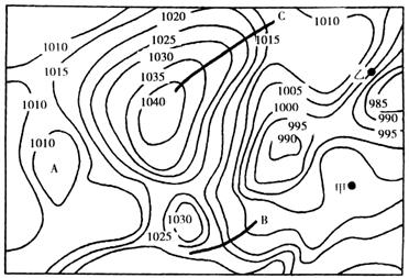 67.(10分)读北半球部分地区某时刻地面等压线图,回答问题。
