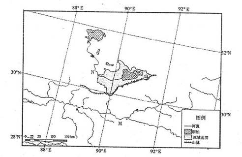 (2)请比较说明,图中M、N两条河流水文特征有何不同。(6分)