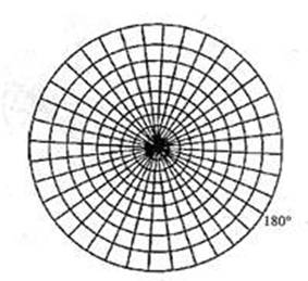 (1)上图是以北极为中心的经纬网图,最外圈表示赤道。请在图中画出太阳直射北纬20度、东经120度时的等太阳高度线;并主在等太阳高度线上标明晨线和昏线。(要求:除太阳直射点和晨昏线外,只画出一条等太阳高度线即可)。(7分)