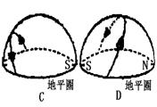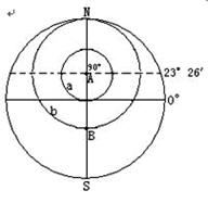 下图中大圆圈为经线圈,两个小圆圈为等太阳高度线。
