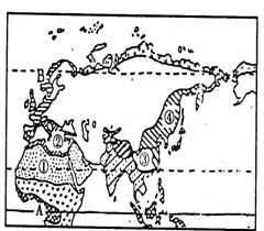 (1)将图中①-④所代表的气候类型名称分别填入下面相应的横线上:(2分)