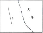 (2)在图示海域画两条过洋流L的等温线,分别标注T1和T2,其温度值关系为T1>T2,以示意该海域表层水温度的分布规律。