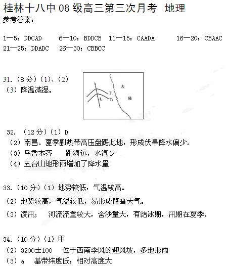 (1)甲、乙、丙曲线中, 为年均温曲线。