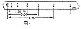 (2)正确使用打点计时器,打出的某一条纸带如图7所示,O是纸带静止时打的点,1、2、3、4、5、6是依次打的6个点,已知电源频率是50 Hz,利用图中给出的数据可求出打点“4”时的速度