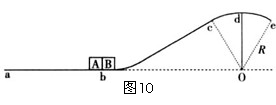 15.(12分)如图10所示,一条轨道固定在竖直平面内,粗糙的ab段水平,bcde段光滑,cde段是以O为圆心、R为半径的一小段圆弧。可