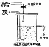 (3)谷氨酸发酵的培养基成分,主要有葡萄糖、氨水、磷酸盐、生物素等,发酵装置如右图所示,可以判断谷氨酸棒状杆菌的新陈代谢类型是______________型。某厂用谷氨酸棒状杆菌发酵生产谷氨酸,结果代谢产物中出现了大量的乳酸,其原因很可能是______ ________。