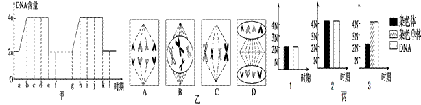 44.(4分)下图甲是连续分裂的细胞在不同时期DNA含量的测定结果,图乙是具有四条染色体的某细胞进行有丝分裂的简图,丙图是细胞有丝分裂过程中染色体、DNA和染色单体变化示意图。请据图回答: