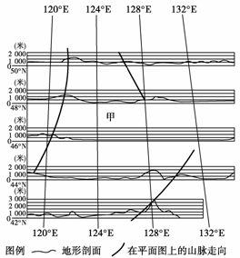 (原创题)下图是“我国某区域沿不同纬度所做的地形剖面组图”。读图回答1-3题。