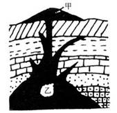 D.乙处为花岗岩,岩石中含有较多的石英、长石、云母等矿物