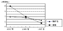 下图为“每冶炼一吨钢所需原料变化”示意图,读图回答30—31题。