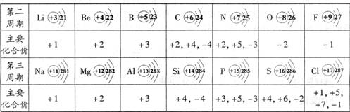 3、(2009·潍坊)下表呈现的是部分元素的原子结构示意图、主要化合价等信息。![]()