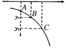 他在曲线上取A、B、C三点,每相邻两点的水平距离相等,