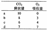 11.在a、b、c、d条件下,测得某植物种子萌发时CO2和O2体积变化的相对值如下表。底物是葡萄糖,则下列叙述中正确的是 ( )