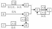下列是中学化学中常见物质间的反应转化关系图,其中部分产物已略去。常温下,G为固体单质,B、I为液体,其余都为气体。A为化合物,I的浓溶液与G在加热条件下生成F、B和C。H可用作工业上冶炼金属的还原剂。请按要求填空:
