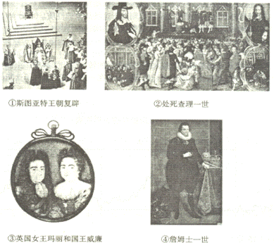 (1)按照英国资产阶级革命的发展进程将上述图像排序,并据此概述革命期间的政体变化。(6分)