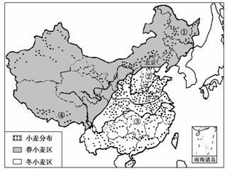 读“我国小麦分布区图”,回答9-10题。