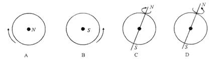 8.读图:下列4幅图中,地球自转方向正确的是: