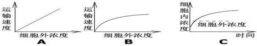 17、物质进入细胞都要穿过细胞膜,不同的物质穿过细胞的方式不同如下图所示,为在一定范围内,细胞膜外物质进入细胞膜内的三种不同情况据图回答下列问题: