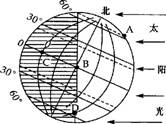 (1)图中A,B,C,D四地中,____________位于昼半球,