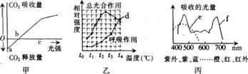 C.若图丙代表两类色素的吸收光谱,则f代表胡萝卜素