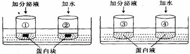 32.( )猪笼草是一种食虫植物,为了验证猪笼草分泌液中有蛋白酶,某学生设计了两组实验,如下图所示。经35℃水浴保温一段时间后,③、④中加入适量双缩脲试剂,①、②不加任何试剂,下列组合能达到目的的是