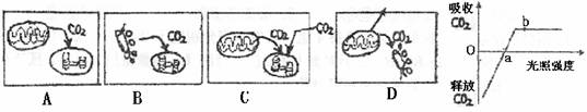 18.下图是植物的光合作用强度与光照强度之间的关系图,下图哪个能够反映b点时的生理过程及量变关系 ( )