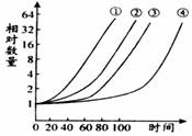 43.右图表示某菌落生长过程中,将该菌落移入与先前营养条件不同的环境后,其细胞数、RNA、DNA和蛋白质的相对数量变化情况。若曲线③表示DNA的数量变化情况,则图中曲线①、②、④分别表示